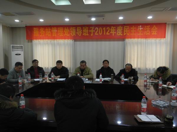服务站管理处党总支为开好此次民主生活会,会前作了各项准备工作。采取发放征求意见表、召开座谈会、班子成员到联系点听取意见等多种形式,广泛征求了意见和建议;召开了2011年度处领导班子民主生活会整改落实情况的通报测评会;处领导班子成员开展了交心谈心;通过集中学习和自学,认真研读了十八大政治报告、新党章、习近平同志的重要讲话和署名文章等内容。会上,各位班子成员围绕民主生活会主题,从思想、作风等方面认真开展了批评与自我批评,查摆自身存在的问题,剖析原因,明确今后的努力方向和整改措施。