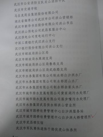 近日,中共洪山区委、洪山区人民政府联合下文,对2011-2012年度区级文明单位进行了命名,白沙洲大桥管理所顺利通过洪山区委的评审,保持了“文明单位”的荣誉称号,白沙洲大桥管理所精神文明建设迈上新台阶。