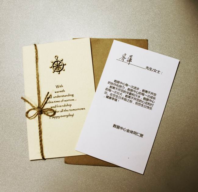 打开一看,原来是数据中心全体同事送上的生日祝福,一张由数据中心负责人亲自设计的生日贺卡。看着卡片上温馨的生日祝词,在寒冷的冬日,小齐从心底感到了温暖。