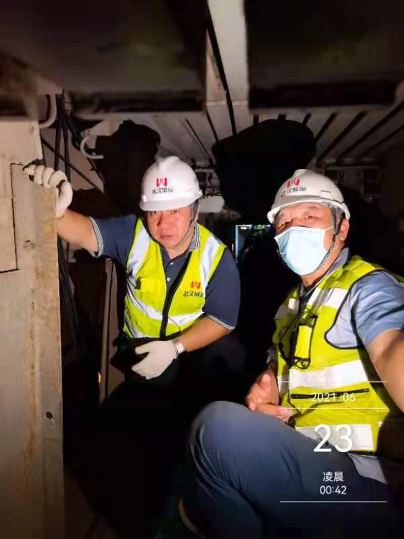 为深刻汲取十堰市“6.13”燃气爆炸事故教训,坚决防范和有效遏制各类安全事故发生,根据城运公司《关于全面开展安全生产大检查工作的通知》要求,城运公司各级领导带队到各桥梁一线进行安全大检查。检查中为及时掌握天兴洲大桥病害情况,分管天兴洲大桥运维所的公司副总经理夏天同志与该所技术人员一起下到该桥0#、5#毛勒缝病害区域进行实地查勘,并多次前往铁路部门一起研究制定整改方案。由于天兴洲大桥是一座公铁两用桥梁,下层铁路运营繁忙,无法为桥梁病害抢修提供充足的作业时间,给抢修工作造成了极大困难。为了既不影响铁路的安全运营又要为抢修创造条件,经过与铁路部门多次积极协调,终于为抢修争取到6月22日至6月24日凌晨和午间,共计12.5小时的5个铁路运营空窗期作业时间。为了这紧张的12.5小时,夏天同志组织城运公司项目部、运维所、建通公司、施工单位等部门与铁路部门一起在现场多次召开项目专题研究会议,共同研究制定作业计划,争取将每一分每一秒都用好、用足。