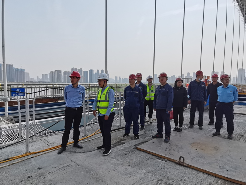 在机械轰鸣的长丰桥提升改造工程项目施工现场,参观人员认真听取了项目现场组技术负责人张涛对项目概况、施工工艺和工程进度等情况的介绍,全面了解长丰桥结构性大修改造和提升的意义,深刻感受到参建人员的艰辛付出和精益求精的工匠精神。在项目部会议室进行的座谈交流中,集中观看了长丰桥提升改造工程施工过程动画演示宣传片,围绕大家关心关注的桥梁结构性改造施工问题,项目施工单位技术人员进行了解惑答疑。与会党员骨干对参观中的所见所闻分享感受,感叹到作为目前国内特大型钢管混凝土拱桥改造中规模最大、技术难度最复杂的旧桥改造工程,施工现场整洁有序,安全警示标志醒目,管理责任措施明晰,对江南泵站项目安全运维管理提供了可参考借鉴经验。希望长丰桥能尽快建设完工,为江城建设再添一道靓丽的风景,使百姓出行更加安全、顺畅。