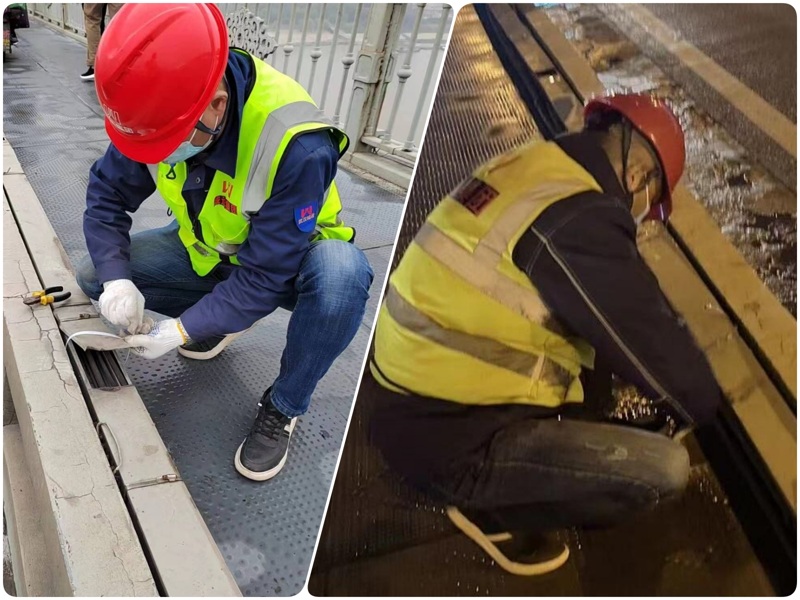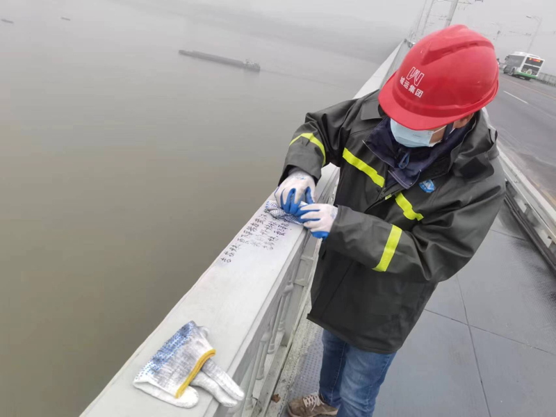 “看!这边铸铁护栏有涂鸦”,运维所所长马东林一路小跑,技术员唐洪勇紧随跟上,走近一看,发现大桥铸铁护栏有2处游客留下的涂鸦,影响大桥的美观和美誉,他们立即拿出随身携带的抹布和清洁制品,小心翼翼地擦试干净,还护拦干净美丽!处理完涂鸦,他们继续巡查。