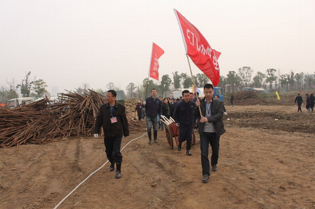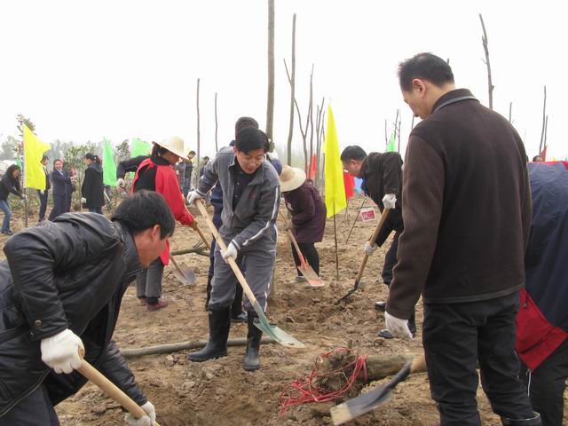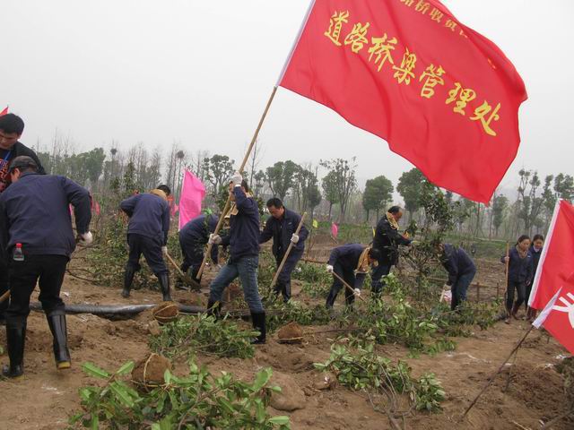 3月12日上午,在第35个植树节到来之际,路桥中心近200名职工齐聚武汉国际博览中心,积极投入到以“建设美丽武汉”为主题的植树活动中。路桥中心主任、党委书记邓耀光同志带领班子成员参加了植树活动。 安静的空地在鲜艳的横幅和彩旗映衬下显得勃勃生机, 中心党委委员、纪委书记赵凯代表中心党委作了简短讲话,植树活动正式拉开序幕。大家分工合作,有的扶树苗,有的培土,在树坑里种下一颗颗希望之树,活动如火如荼的进行,大家干劲十足,不怕累不怕脏,处处闪现着路桥人热情高昂的精神风貌。不到两个小时,一大片树苗蔚然成景,大家在植好的树木上小心挂上各自准备好的“爱心”卡、“认养”卡,纷纷拿出手机、相机同小小树苗拍照合影,留下美好纪念。 中心团委组织广大团员青年参加了此次植树活动。