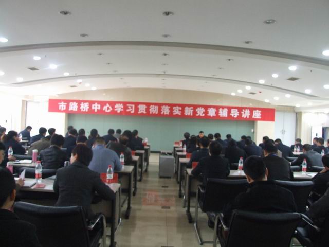 3月21日上午,路桥中心邀请市委党校常务副校长王观松教授作学习贯彻新党章辅导讲座。中心党委书记邓耀光及其他班子成员、部分党员干部130余人参加了学习。讲座由纪委书记赵凯同志主持。