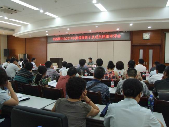 根据市城投集团党委统一部署,6月14日市路桥中心召开领导班子及成员2012年述职考评工作会议。城投集团考评小组成员,路桥中心班子成员、中层干部及所属单位党政主要负责人和职工代表共计60人参加了会议。会议由中心党委委员、副主任周胜利同志主持。