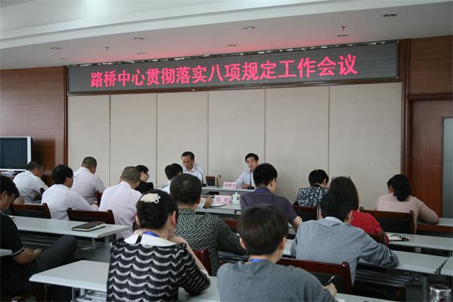 路桥中心党委书记、主任邓耀光分析了当前贯彻落实中央八项规定的总体形势、违反规定的主要类型和成因,传达了上级主要工作要求。并提出路桥中心贯彻落实八项规定的具体要求,一是要进一步提高认识,统一思想。“作风建设无小事,作风建设永远在路上”,各级党员领导干部要带头贯彻执行中心八项规定,转变思想观念,以身作则,切实改变工作作风;二是要加强宣传教育,将中央八项规定和落实要求及时传达到各单位、各部门;三是从小事细节入手,各单位各部门要加强管理,严格遵守劳动纪律,工作时间禁止购物、玩游戏、看电影,服务窗口更要严格执行工作纪律。各单位各部门要开展经常性的监督检查,确保责任范围内不发生违规问题;四是对检查发现的违规问题,不护短,不遮掩,一律严肃处理。