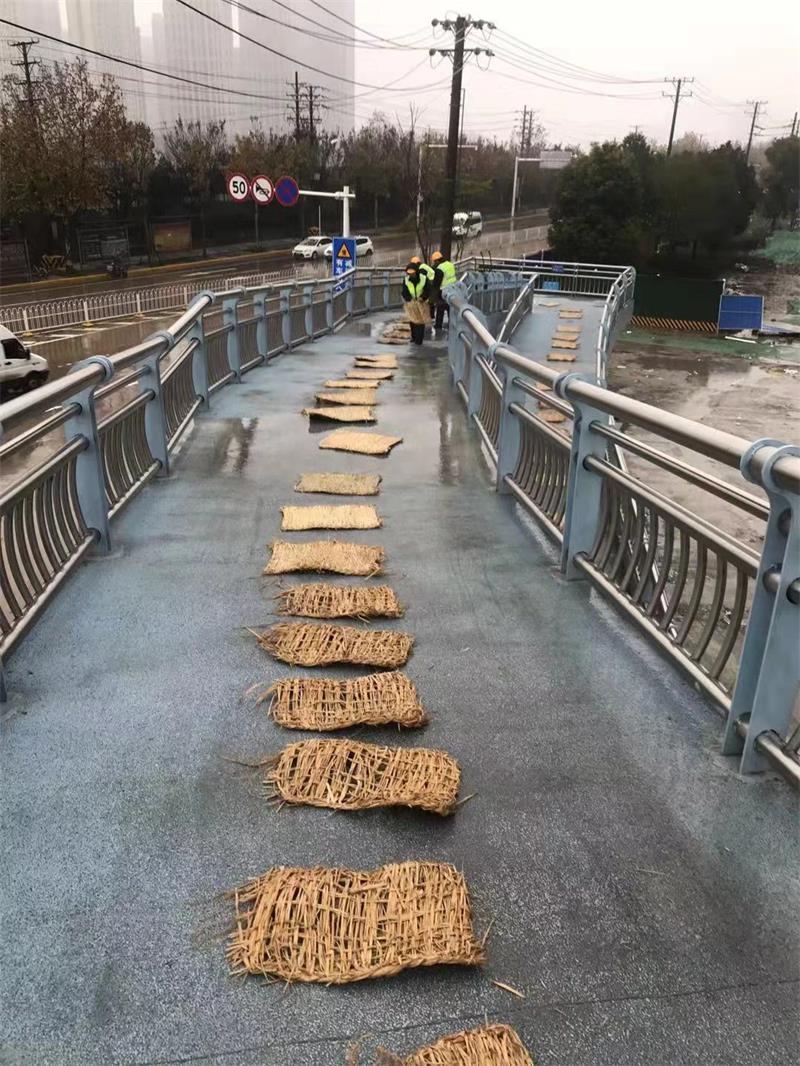 12月6日17:00,城市运营公司启动融雪防冻4级应急处置预案,公司领导实行24小时在岗值班,所属路桥运营分公司管理人员开始值班,撒盐作业人员、设备及车辆实行备勤。截至7日6:00,所辖9座桥梁通行状况正常,未发生较大交通事故和堵塞事件,在人工巡查中未发现桥面结冰及斜拉索冰凌现象。共投入人员116人,车辆19台,天兴洲长江大桥开展撒盐作业1次,使用工业盐4吨,其他桥梁未开展撒盐作业,铺设防滑草垫500个。