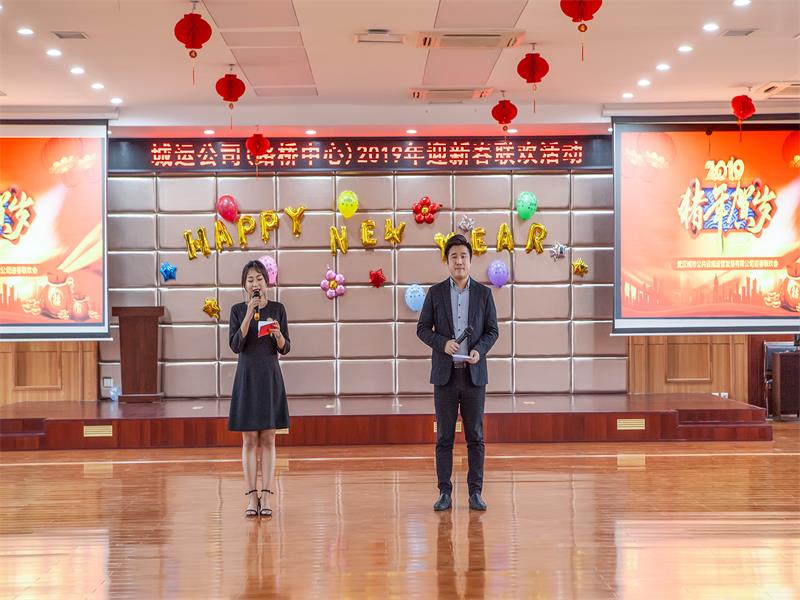 旺狗报喜辞旧岁, 金猪纳福迎春来!2月2日下午,在新春佳节即将来临之际,武汉城运公司举办了“欢天喜地迎新春,携手共进创辉煌”迎新联欢活动,公司领导班子成员、全体本部职工及各分(子)公司部分职工近200人参加联欢。