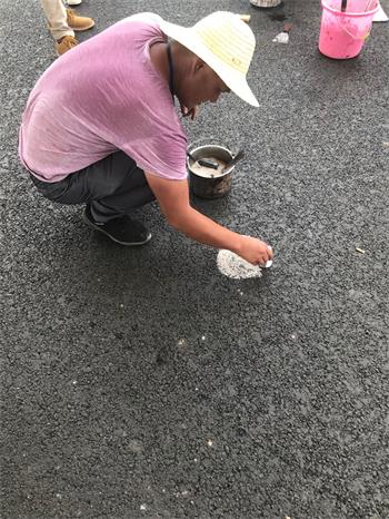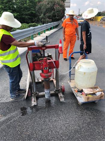 检测员在沥青混凝土路面渗水系数检测和钻芯取样。