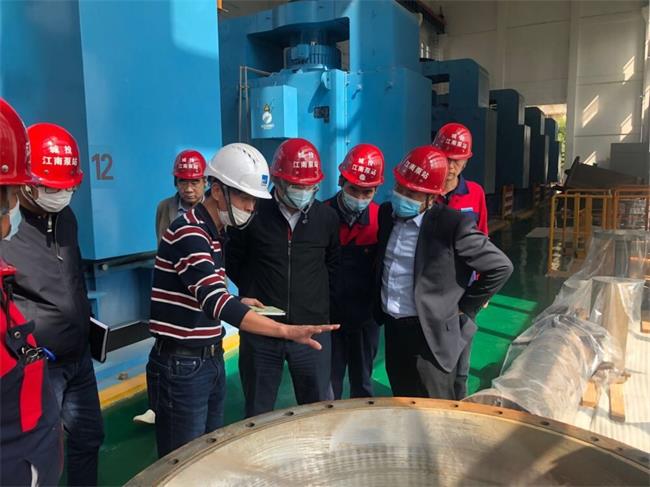 会后,城运公司总经理张正发、副总经理房柱及企业管理部、项目管理部负责人,在江南泵站负责人的陪同下,到泵房车间实地查看了机组检修工作现场。
