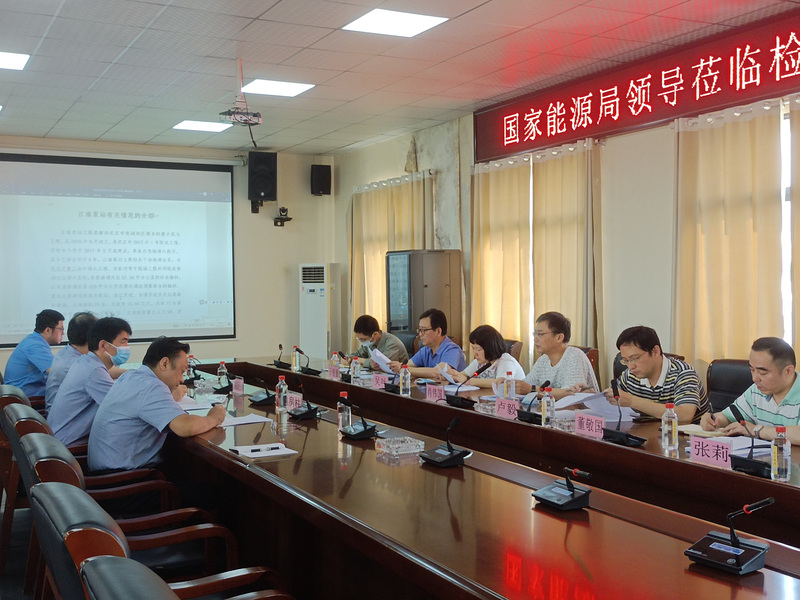督查组在听取江南泵站生产调度负责人关于泵站工程概况、作用发挥及电气设备设施运行情况的汇报后,对江南泵站相关自备应急电源配置及管理情况进行检查,并就能源供需需求展开座谈交流。