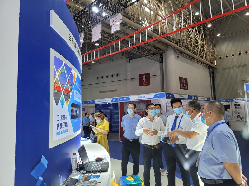 市城运公司董事长鲁有月在展台前推介城运公司桥梁管养技术和成果