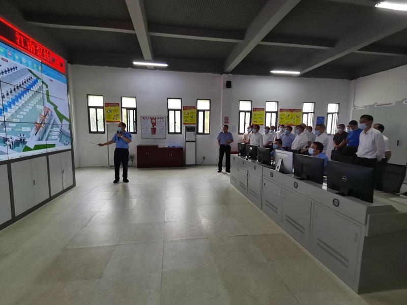 国家防总检查组在泵房中控室察看关键部位、重点环节的运行情况