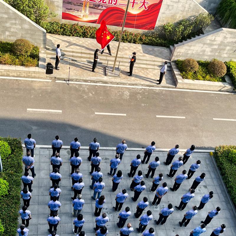 伴随着庄严的国歌声,鲜艳的五星红旗冉冉升起。现场人员庄严列队,齐唱国歌,向五星红旗行注目礼,共同祝福伟大祖国繁荣昌盛。