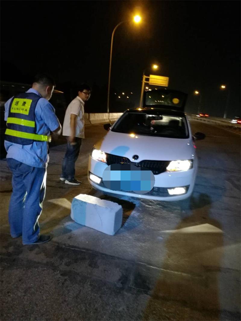 5月31日深夜,路桥中心桥梁管护员巡查时发现,三环线长丰桥路段一辆小轿车因故障抛锚停在桥面。由于车辆停放处在桥梁下桥拐弯处,过往车辆夜间驾驶视线差,行车速度快,且没有设置警示标识,极易出现交通事故。桥梁管护队员立即要求司机取出随车三脚架警示牌摆放到车后,一边疏导交通,一边查看车辆故障情况,帮助司机用千斤顶将车顶起,移出卡在车下的砖头,引导司机将车辆移至路边安全地带。司机对管护队员给予的帮助表示衷心感谢。