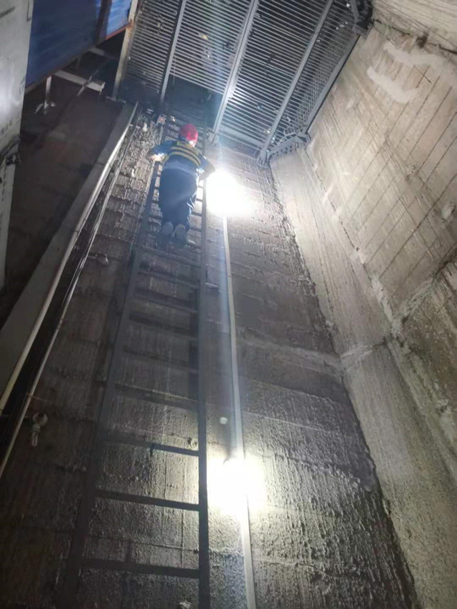 白沙洲大桥3号主塔内,密闭的空间更是闷热难耐,但管护队员们全然不顾,登上爬梯对主塔内的照明灯具进行检修,清理主塔检修平台上施工遗留的垃圾,对主塔下的线缆进行了归整。