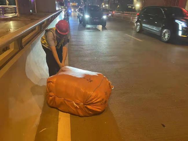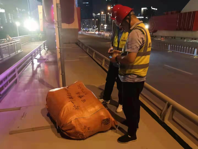 9月10日晚上19时左右,路桥运营第二分公司汉江一所管护队员们正在对晴川桥进行日常巡查时,见一辆小货车从慢车道驶过时遗落了一大包货物在桥面。