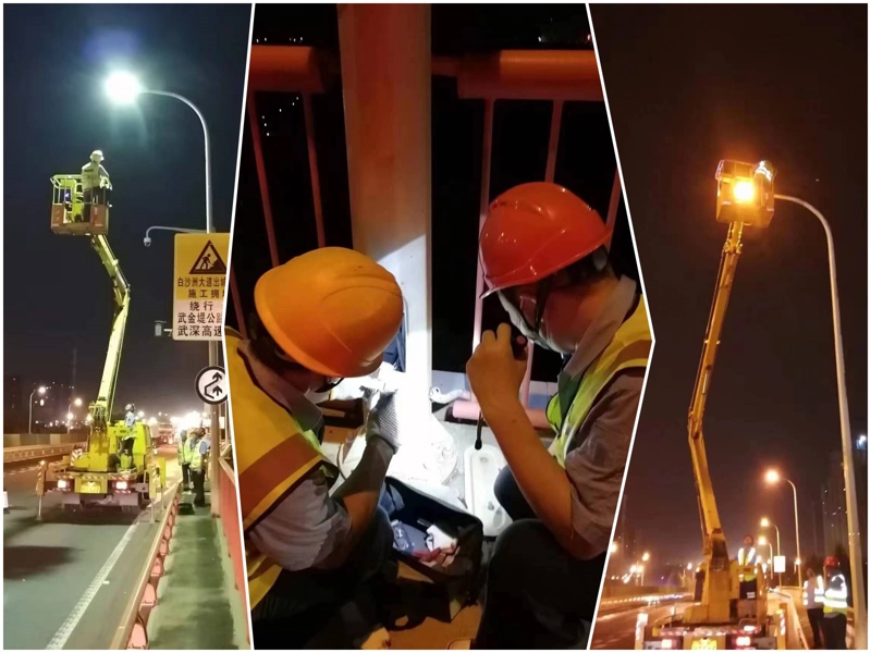 8月18日21:30时,虽是夜间,但三伏天的夜晚依然闷热难耐,桥梁运维分公司所属白沙洲桥梁运维所维修队员接到白沙洲大桥路灯维修的任务。