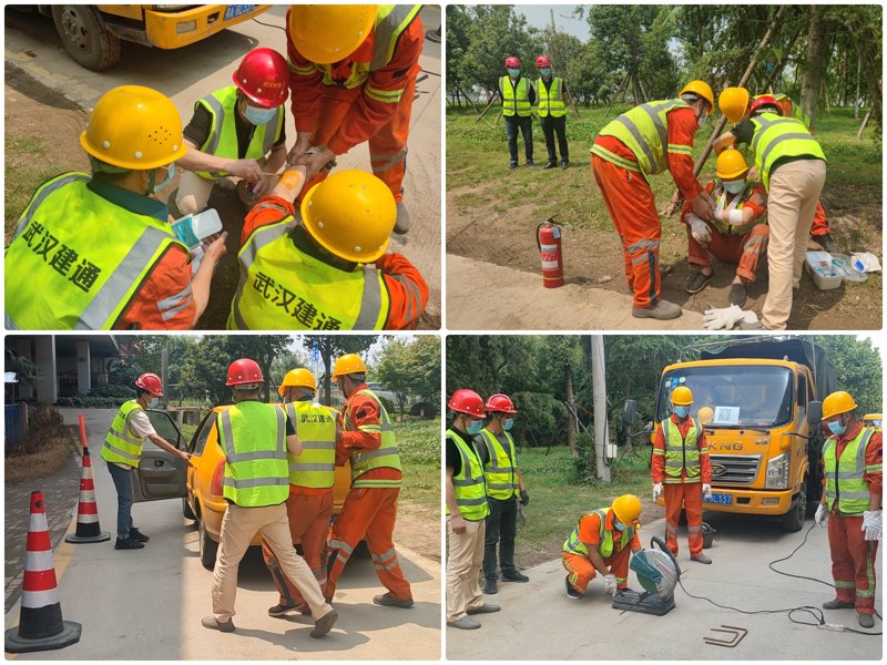 2022年5月26日中午,建通公司在白沙洲维修基地开展了本年2季度的应急演练活动。除参演人员外,公司工程事业部人员及全体施工劳务人员均到场观摩学习。按照“贴合实际、发挥实效”的原则,本次演练围绕桥梁维修施工中较为常见的切割作业,以施工人员操作切割机不慎割伤手臂为背景,进行全过程实战模拟。
