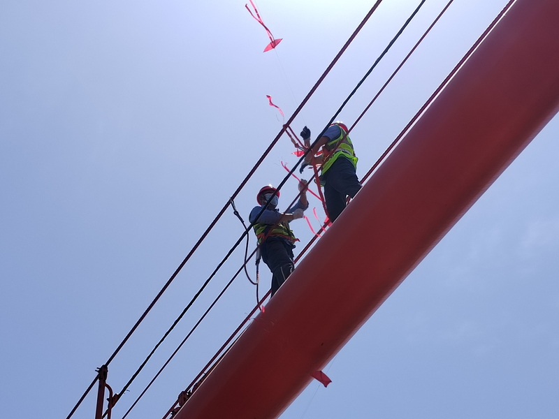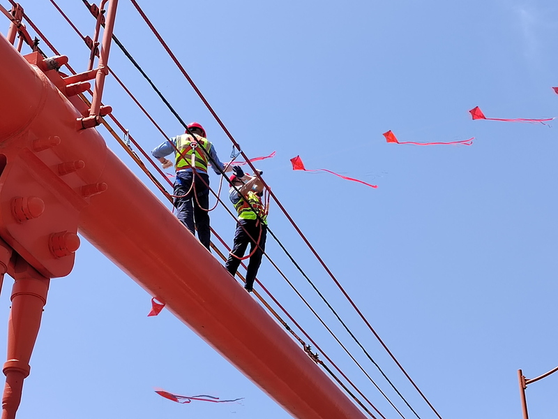紧急情况下,鹦鹉洲长江大桥运维所立即启动应急预案,派遣管护队员赶往现场处置。管护队员到达现场后,穿戴好防护用品登上主缆的50米高处,清理悬挂在主缆上的风筝。半个小时后顺利取下缠绕在主缆上的风筝,消除了安全隐患。