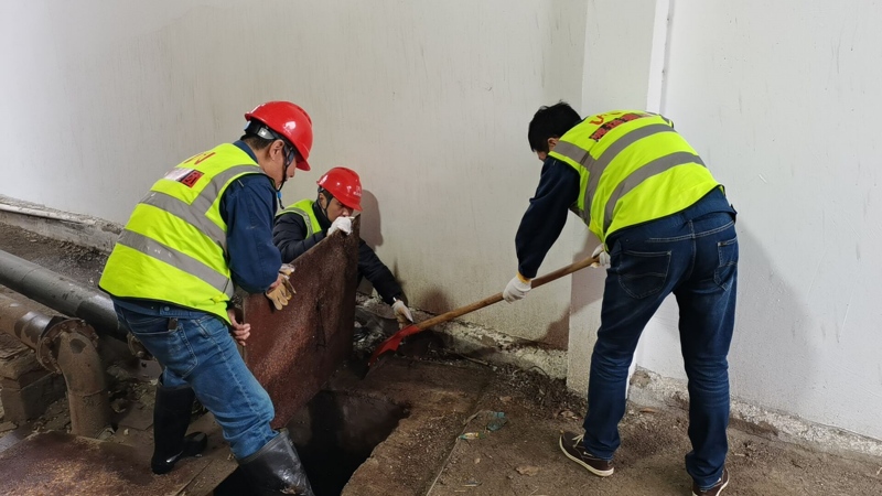 工作时大家换上胶鞋,手拿铁锹,在潮湿阴冷的沉水井边,他们先用铁锹清除井底淤泥,然后钻到沉水井下面,将抽水泵底部叶片上缠绕的异物拾捡干净,最后用小推车将淤泥运走。虽然浑身被污泥和污水弄得又脏又臭,但没有人有一句怨言,在大家共同力下,将沉水井、出水口井清理疏通干净。疏通完后,他们又对抽水泵进行了安全排查检修,并进行了开机试运行,抽排工作正常。