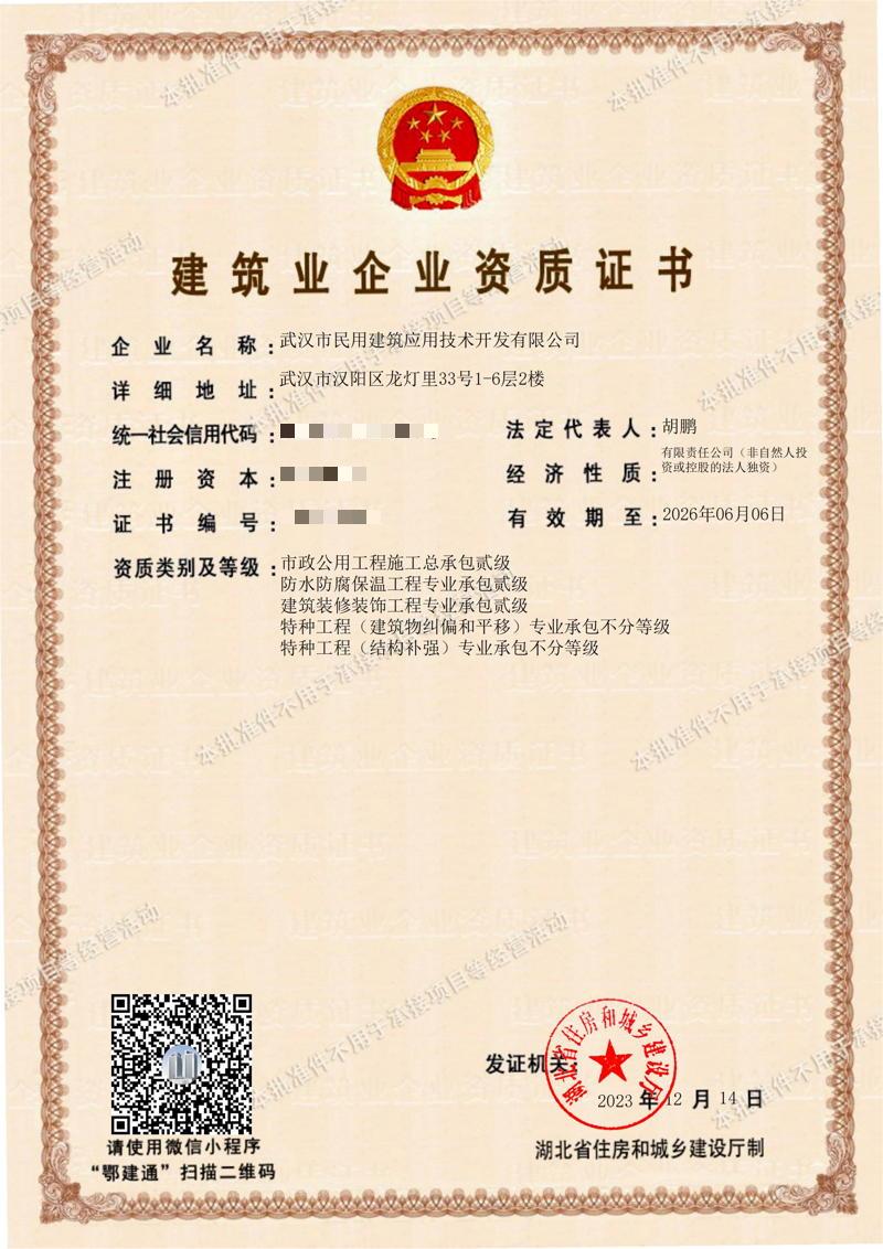 近日,城运集团公司全资子公司应用开发公司顺利通过了湖北省住房和城乡建设厅、武汉市城乡建设局逐级审核,成功增项市政公用工程施工总承包贰级资质(简称市政贰级资质)并取得证书,这标志着应用开发公司迈入了市政施工项目发展的新阶段,迎来了公司发展的新突破、新机遇。