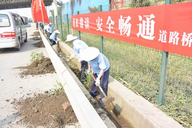 2013年5月23日,从三环线南段庙山立交起,至北段双桥村泵房,清淤工作全面展开,处机关全体人员和所属各管理所56人参与。在34℃的高温下,全体桥管人无畏骄阳,投入到清淤战斗中。三环线路边边沟最窄处宽0.5米、深0.7米;最深处宽1米、深1米,里面填充着杂草、淤泥、石块、过往车辆丢弃的废弃物以及长期积累的渍水,散发着阵阵恶臭。这些现状没有吓倒桥管人,他们摆放反光锥筒,分隔作业区,确保作业安全;他们站在边沟内,头戴草帽、身着反光背心,手持工具,精神抖擞进行清淤,汗水很快浸湿衣衫,灰尘弄脏了脸颊,没有人去理会这些,有的只是如何能又快、又好的完成工作。经过大家的共同努力,全天全处出动车辆13台次,人员56人,清理边沟700米,为接下来的清淤工作打下了良好基础。
