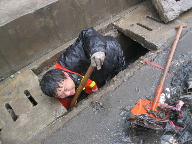 5月15日,风雨交加,天兴洲大桥管理所党员、入党积极分子及当班管护队携带作业工具,对三环线双桥村京广线下穿通道泵站排水边沟、涵管、挡渣板处存在的废弃物及淤泥进行清淤、疏捞。他们撬开排水边沟上的混凝土盖板,先用铁耙将涵管入口处挡渣板上附着的废弃物进行仔细清除,然后用铁锹对边沟积存的泥沙和淤泥进行疏捞,通过近3小时的疏捞工作,共清除废弃物及淤泥1.5吨,排水边沟内的积水得到迅速的排放,排水管道恢复了畅通,有效的确保了三环线的安全畅通。