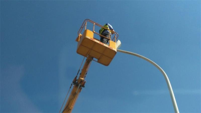 8月13日9时,汉江桥梁管理二所管护人员携带灯具和配件,驾驶高架车来到长丰桥桥面。他们互相配合,有人做维修现场安全防护,疏导交通;有人递工具、配件,协助维修;电工技师娴熟地接线、包扎、安装,对故障路灯线路、灯具逐一进行了维修更换。此时,桥面温度达到40多度,大家每个人都挥汗如雨,但维修工作有条不紊进行。至11时,桥面故障路灯全部维修完成。